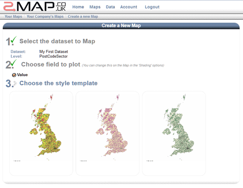 Once the field is chosen you can select the default style for the map.